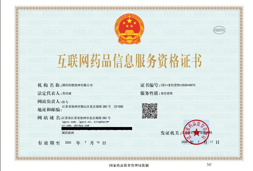 0516-8010-1098 江蘇省徐州市高新技術(shù)開發(fā)區(qū) 北京南路283號(hào)萬泰廣場(chǎng)1號(hào)樓7-13層 互聯(lián)網(wǎng)藥品信息服務(wù)資格證書